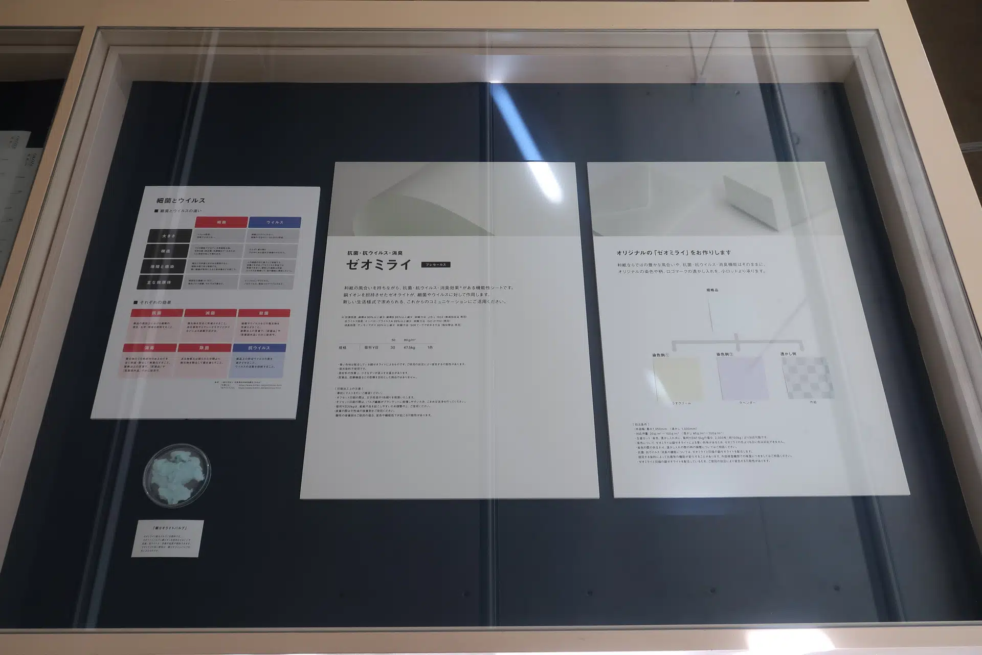 「ゼオミライ」は、銅イオンを担持させたゼオライトを配合し、 抗菌・抗ウイルス・消臭効果※を持たせた機械抄きの和紙です。