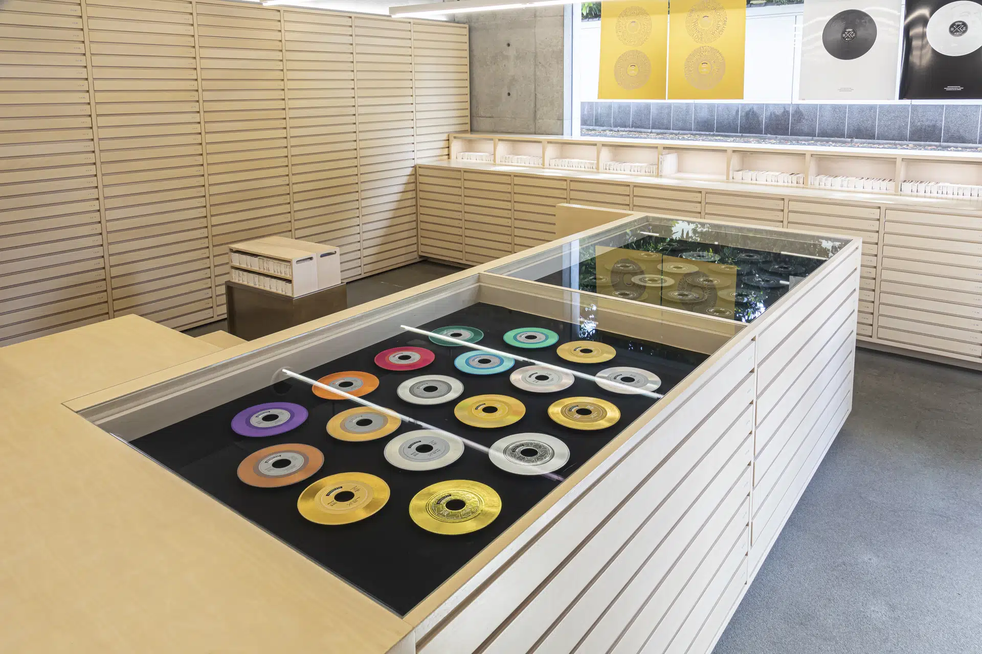 そこで思いついたのが、紙でレコード盤を作り、青山見本帖の店内をレコード盤とレコード的なものでいっぱいにすること。