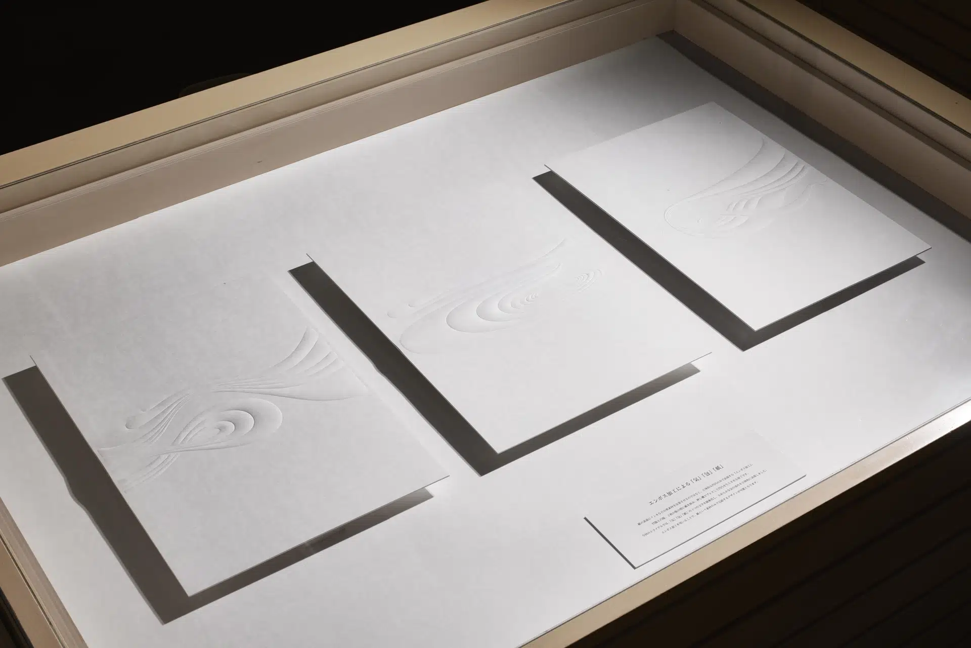 その強度を活かして、彫刻版によるエンボス加工の限界に挑戦し、美しい立体感のポスター作品が生まれました。