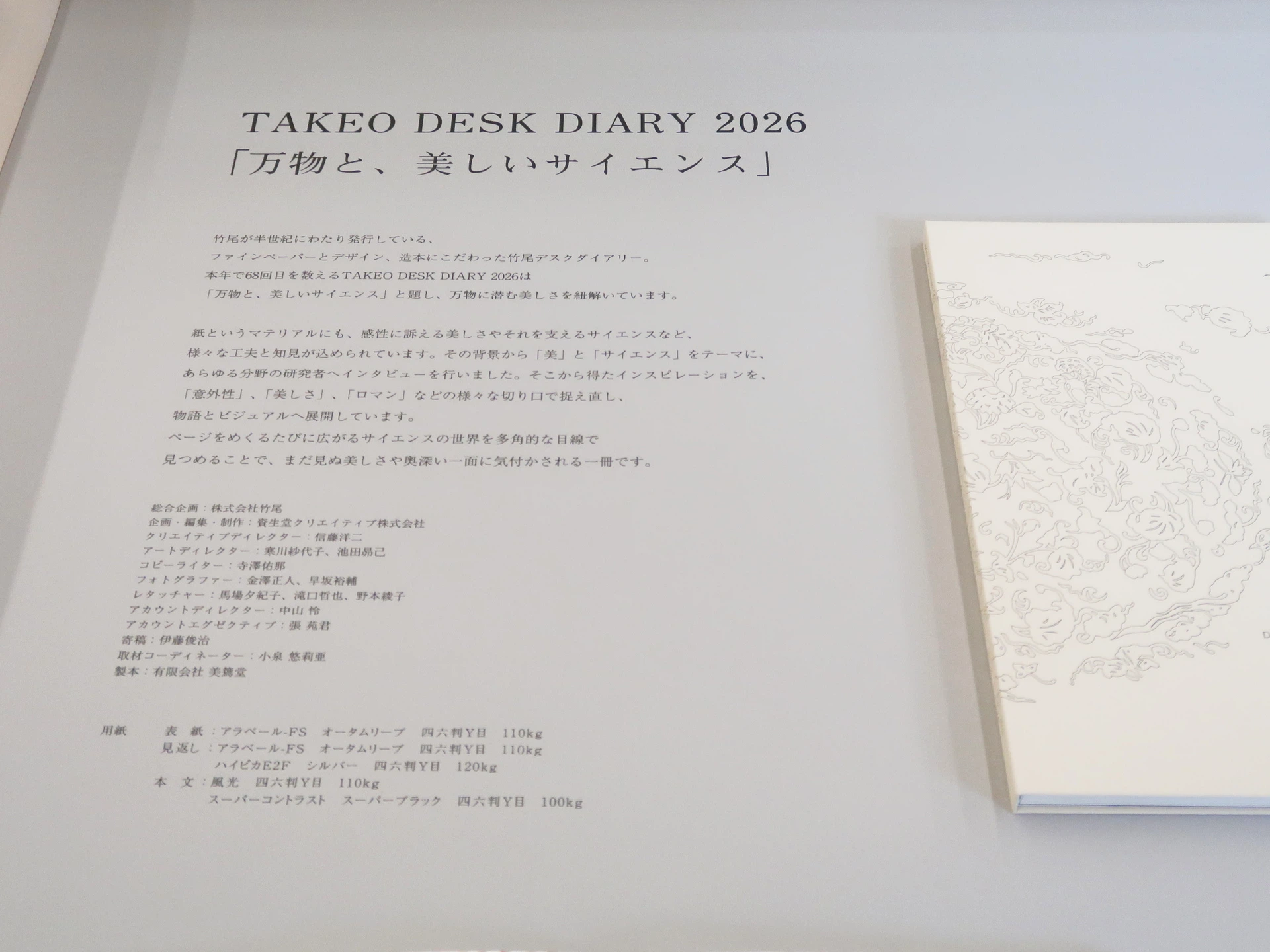 本年で68回目を数えるTAKEO DESK DIARY 2026は「万物と、美しいサイエンス」と題し、万物に潜む美しさを紐解いています。