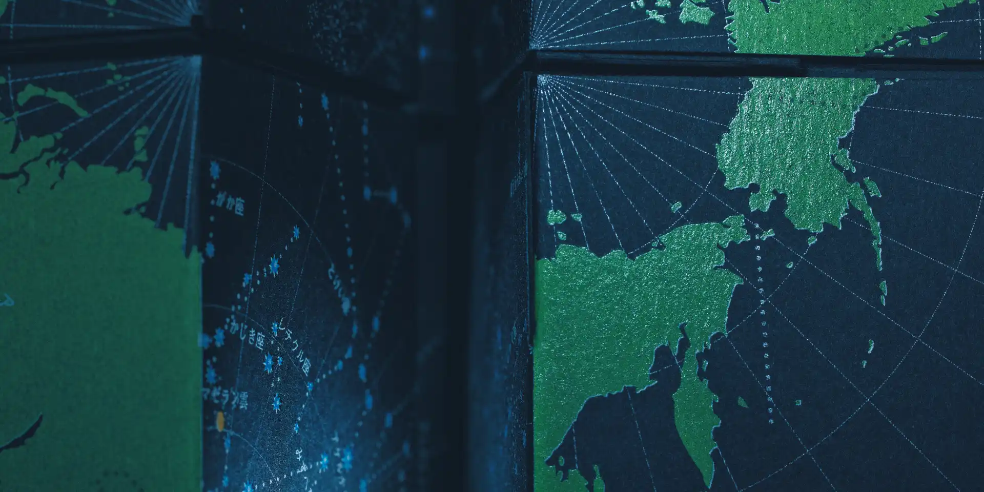 表面のすみずみまで緻密な印刷が施された地球儀は、