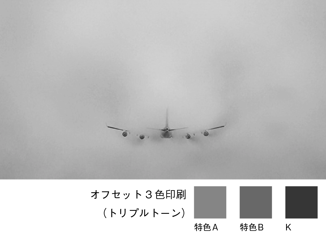モノトーン印刷と、スミと特色2色の3版で表現する