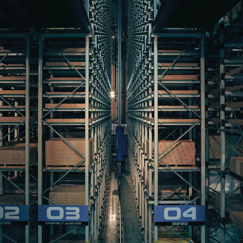 紙を格納するための高層自動ラック。