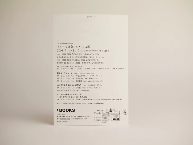 2014年12月に発足した本づくりの技術・文化を継承するための活動団体「本づくり協会」を広く知っていただくため関東をとびだしてのイベント第一弾として、名古屋コロンブックス様のご協力を得て、7月1、2、3日に「本づくり協会フェア名古屋」を開催します。