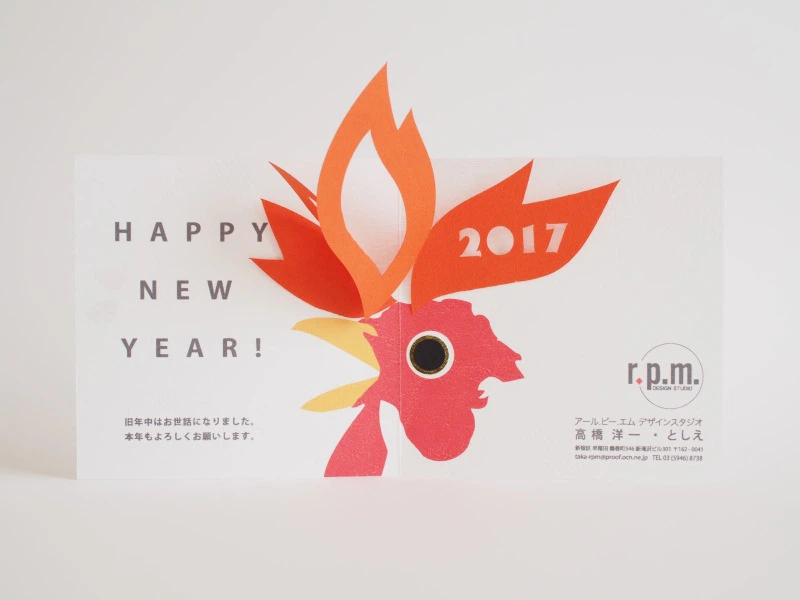 POP-UP式の絵本やカード、セールスプロモーションツールを制作されている、r.p.mデザインスタジオさんからいただいた年賀状をご紹介いたします。