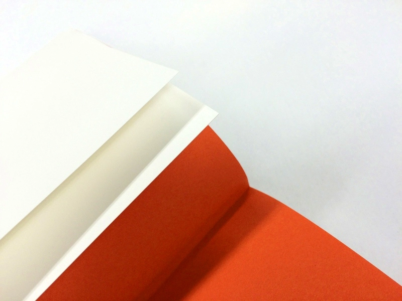見返しには、本文で使われている特色インキに近い色ということで、NTラシャの朱をセレクト。
