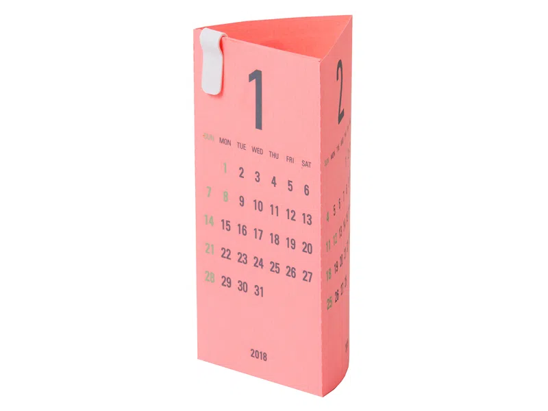 「リプラグ トライアングラー」は、三角に巻くことで常に3ヶ月分の日付を確認できるカレンダーです。くるくる回すだけで、3ヶ月間を一度にチェックできるコンパクトな形状。月ごとにミシン目が入っているので、過ぎた月は順に切り取ることができます。