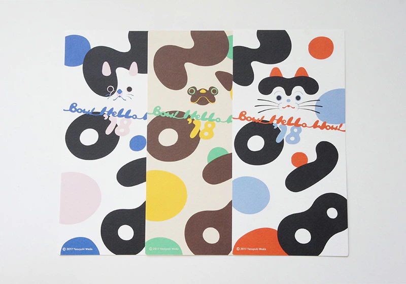 凸凹した素朴な風合いがデザインの雰囲気に合っていることと、組み立てる際に、折ったり丸めたり貼り付けたりするのも問題なくできるのでこの紙を選びました。組み立てると犬張子、パグ、フレンチブルドックになります。