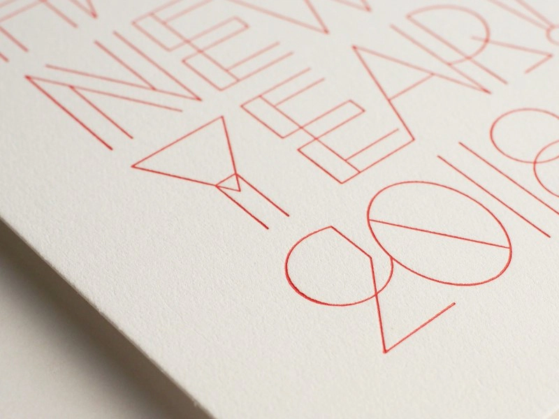 新しい年のご挨拶としてシンプルなものをと考え、白い紙に赤インクが映えるものを検討しました。また、細い線が多いデザインのため、活版で特徴を出すためには紙の柔らかさも必要でした。白色度が高く、厚みと柔らかさの両方を兼ね備えていることから、今回パチカを選びました。パチカは本来加熱によって出る透明感が特徴的な紙ですが、触った時の暖かみも年賀状の挨拶に適していると思いました。