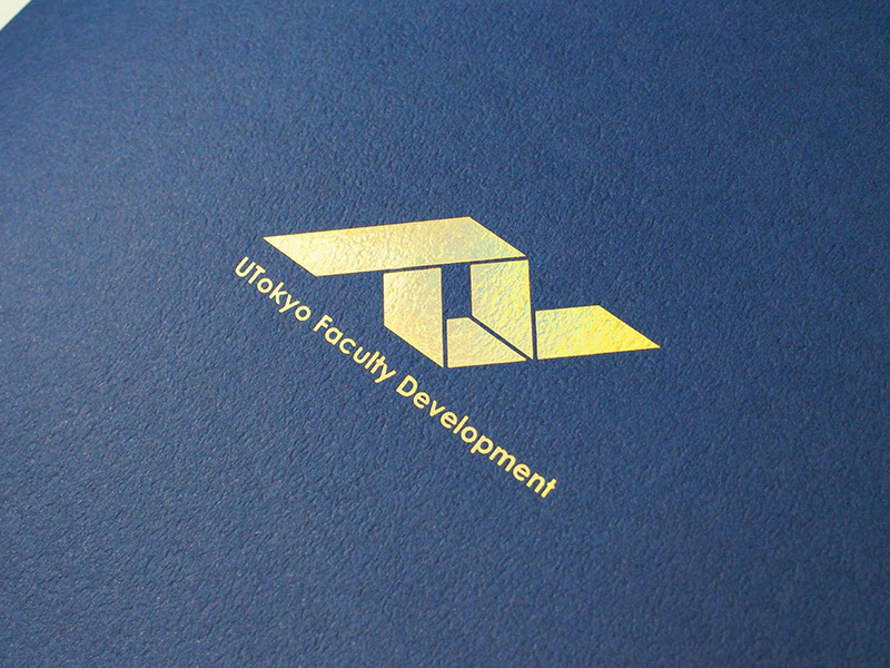 東京大学のカラーでもある淡青に近い色を基調に、プログラム修了の誇りを実感できるよう、より深い藍色と格式の感じられるテクスチャを持つ用紙として、また中央にロゴを金箔押しすることを検討していたことから、この用紙を選びました。(東京大学)