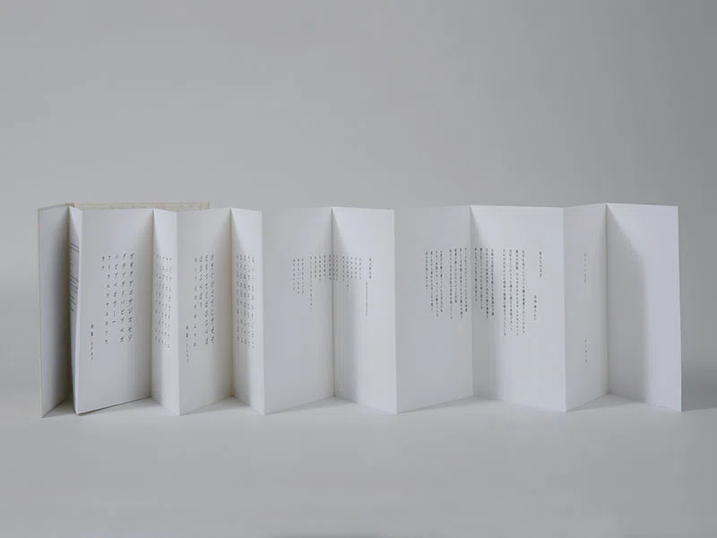 本づくり協会が発行する会報誌『Book Arts and Crafts』の企画から生まれた詩集です。書体設計家の鳥海修さんが谷川俊太郎さんのために書体をつくり、それを受けて谷川さんが書き下ろした詩が「私たちの文字」です。印刷は嘉瑞工房で何種類かの紙で試し刷りをし鳥海さんに見ていただきました。「文字の細いところと太いところの表情が豊かに出ている」ということで、ヴァンヌーボVが選ばれました。(美篶堂 上島明子さん)