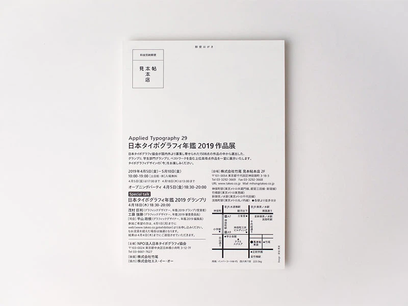 「日本タイポグラフィ年鑑2019作品展」DM