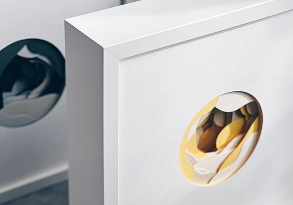はじめは「白い紙に表裏特色刷り+小口染め」の方法も考えましたが、白い紙を色で塗りつぶすこと自体が「集成材に突板を貼った安い家具」のニュアンスとリンクし、あまり良く思えませんでした。