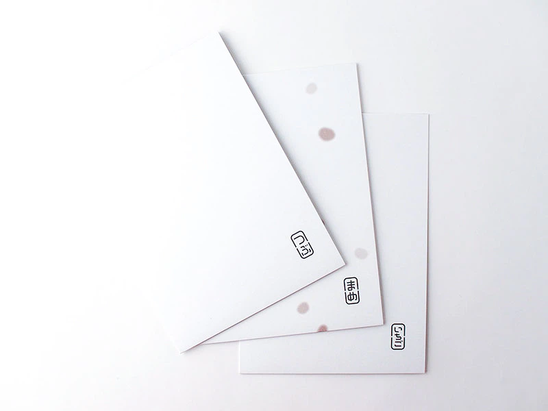 ファイルを3種の大福に見立てた作品です。大福の粉っぽさや温かみをNTラシャの混じり気のない白と紙の質感で表現しました。ファイルを開くと中にあんこがぎっしり詰まっています。ぜひ、手にとってご覧ください。(プランテーション 原田さん、田中さん)