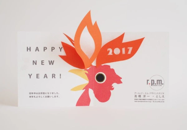自社年賀状には毎年「アラベール」を使っていましたが、2019年は新鮮な気持ちで「レザック66」使いました。年賀状はとても小さい印刷物なので、全紙に面付され裁断された「レザック66」のテクスチャーは1枚1枚異なります。そこにどんな色面が走っていたらかわいい印刷物になるか考えて作りました。(長澤昌彦さん)