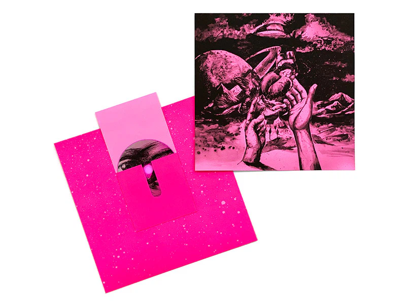 全ての側面から視覚や触覚といった様々な感覚に影響を与える素材として、外スリーブにプラスチック素材を選びました。加えて、マーメイドの蛍光ピンク、マットな質感、ふわふわとした画用紙のような風合いといった、多くのユニークな特徴が印象的で、初めて見て触った時から感動し、選びました。このアルバムのキーワードはPで、ピンクに由来します。外スリーブ以外のパッケージの全ての部分にマーメイド ネオ・ピンクを使用しています。(Decembellさん)