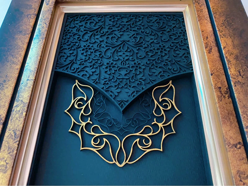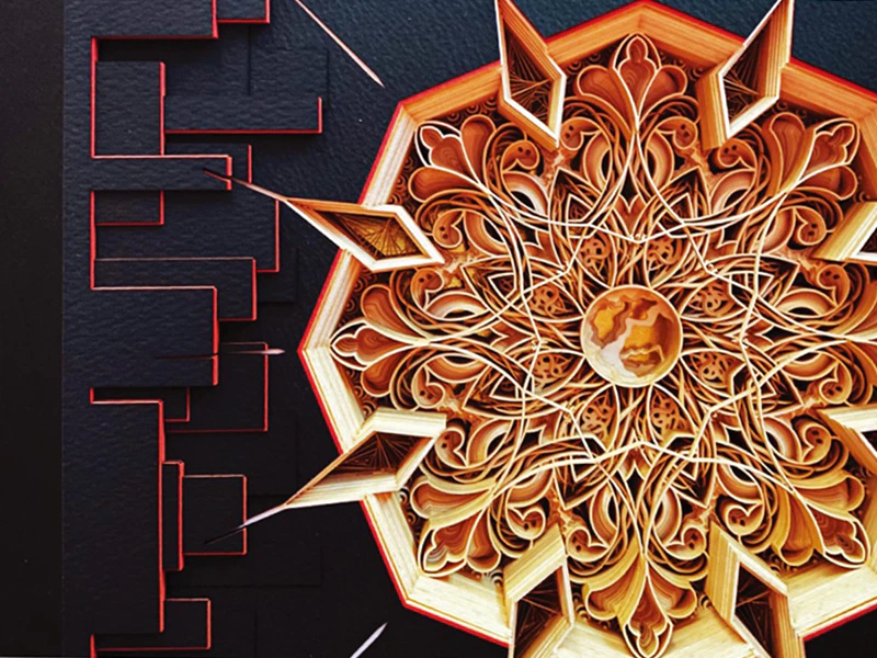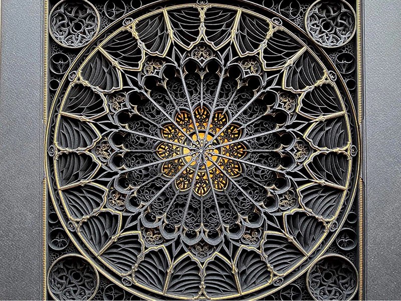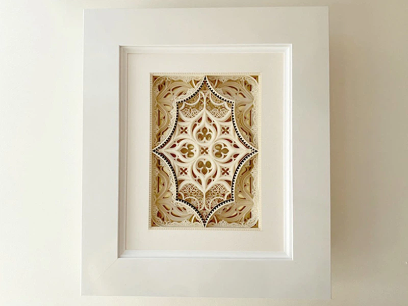 紙を幾重にも重ねて彫り、彫刻のような作品を制作されている輿石孝志さんにご用途をおしえていただきました。