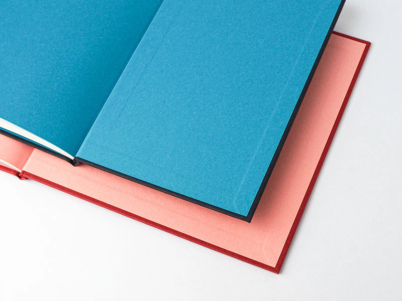 見返しは、厳かな表紙からのギャップを楽しめるように鮮やかなNTラシャ。
