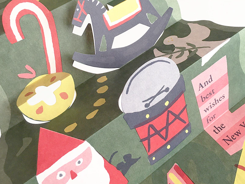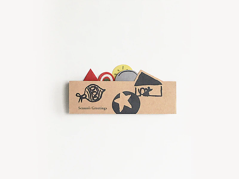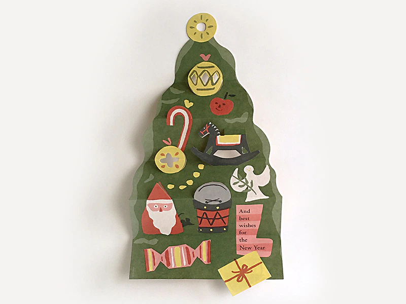毎年1つ新作を加えつつ、しかけのあるグリーティングカードを制作しています。 今年はクリスマスの定番・ツリーです。イラストがにぎやかな、チラシのような手軽な質感をイメージ。「クラフトペーパー デュプレN」の片面の白でそれをかなえつつ、畳んだときも裏のクラフトペーパーの茶色と相性の良さそうなカラーでまとめました。閉じた時と開いた時、二つの顔を分かりやすく表現できる素朴ながらも頼もしい紙です。(井手久美子さん)