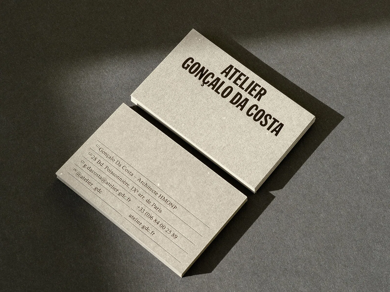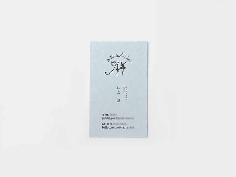 名刺は人の手から人の手へと渡されるご挨拶。1枚1枚大切に渡せるよう、受け取った時の手触り、紙の重み、質感の良いものをクライアントと共に探し、この紙を選びました。グムンドコットン サックスブルーは、光の下で変化が出る綺麗な色彩で、手触りの良い紙の風合いは活版印刷ととても相性がよく、表現したい形に仕上がりました。(松下彩さん)