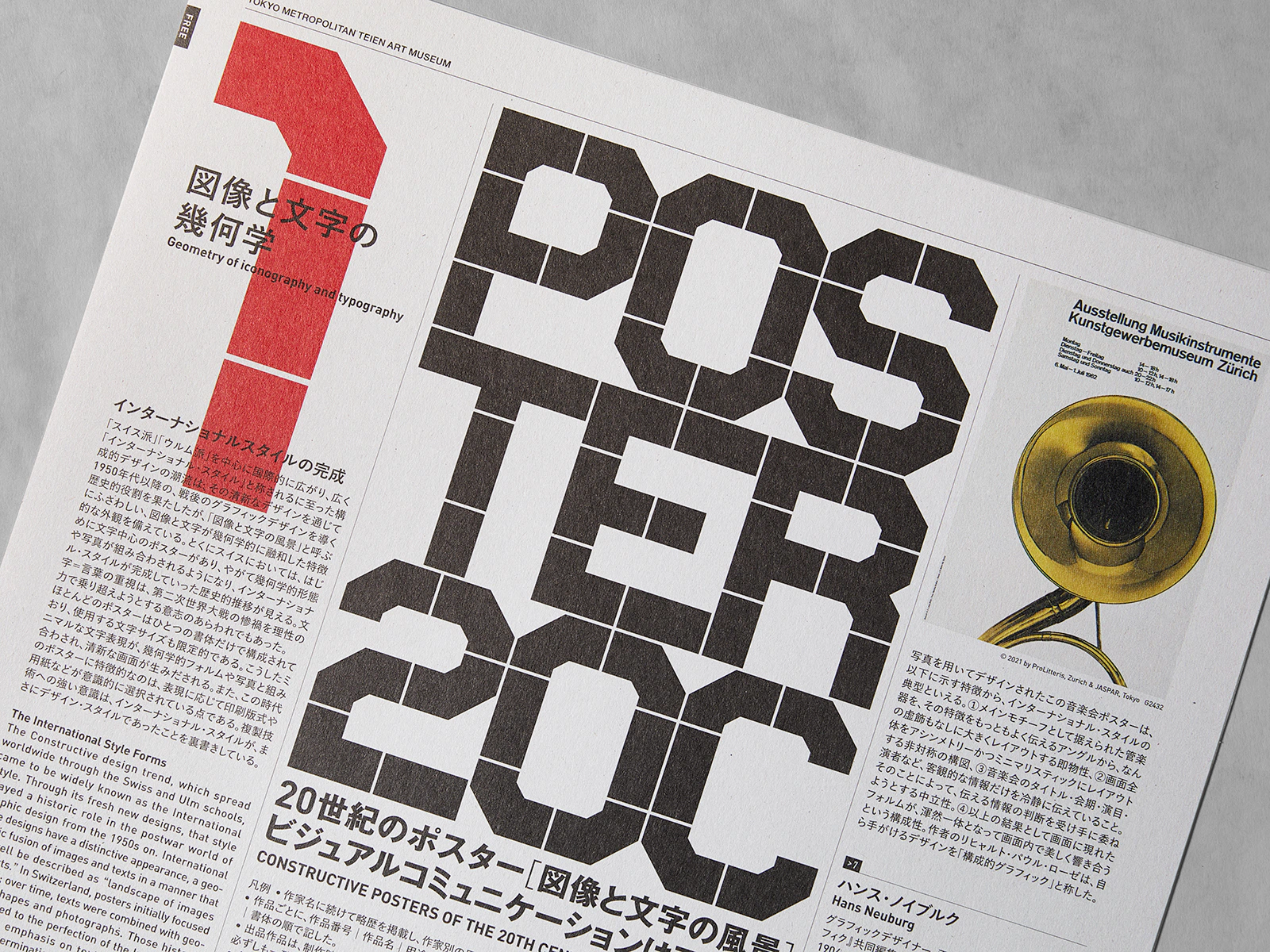 東京都庭園美術館で2021年1月30日に開幕した「20世紀のポスター[図像と文字の風景]―ビジュアルコミュニケーションは可能か?」。竹尾ポスターコレクションの中から20世紀ヨーロッパ・アメリカの構成的ポスター130点が並ぶポスター展です。図像と文字がミニマルに響き合う構成的ポスターが、アール・デコ様式の本館(旧朝香宮邸)の空間とコラボレーションし、新館のホワイト・キューブには、よりデザイナーの感性が前面に押しだされ、実験的で多様になったポスター群がひときわ映えます。展覧会の企画協力をした多摩美術大学グラフィックデザイン学科は、1998年より株式会社竹尾との共同研究としてコレクションの研究に取り組んできました。ポスターが制作された時代背景や、ポスターに使われた用紙、印刷版式、色数、書体の調査など、多くの方の尽力で20年以上積み重ねられた成果の発表の場にもなっています。