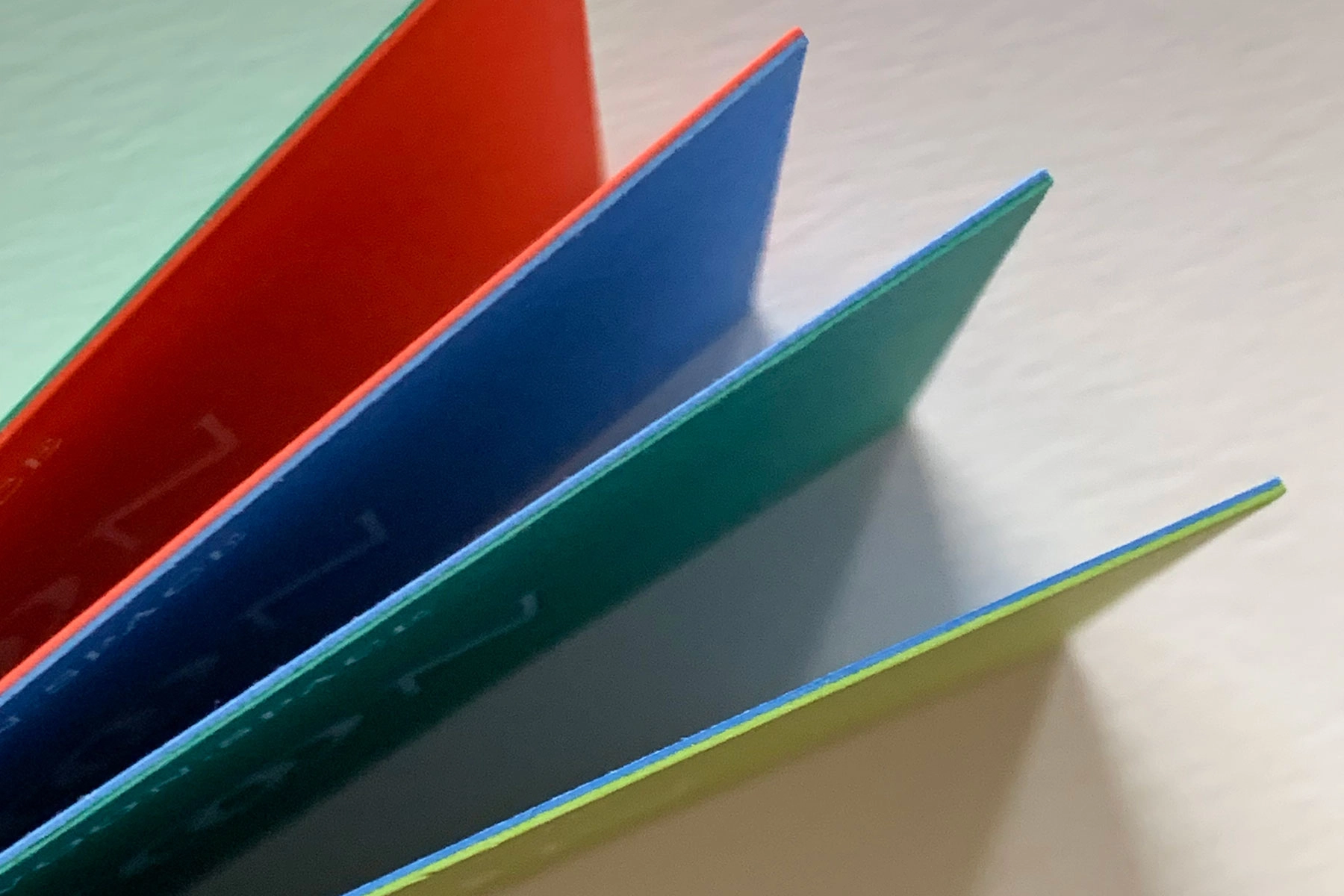 私達が選んだNTラシャはとてもカラフルなので、文字を目立たせて読みやすくするために、すべて白インキでシルクスクリーン印刷しました。紙の美しい質感はそのままに、通常の印刷とは一味違った遊び心溢れる仕上がりになっています。(印刷会社:The Archivistさん)