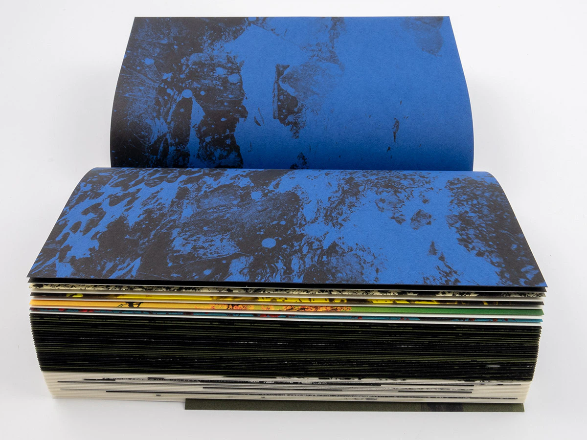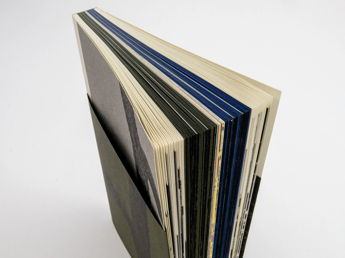 ビオトープGA-FSはヨーロッパではあまり見かけない色合いであるのと、色の選択がありながらも厚みの選択肢もある紙は中々無いので、今回使用させていただきました。写真との相性、手触り、インキののりも良かったです。色違いではありますが、一種類の紙のみ使用したことで、混在するタイプの違った写真に統一感を出すことが出来ました。(若林亜希子さん)