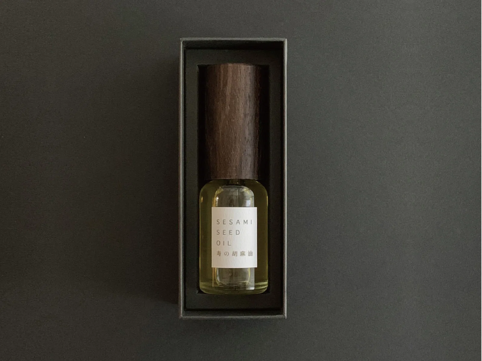 鹿児島県にある、隆起した珊瑚礁でできた喜界島。その豊かな自然を凝縮したパッケージです。瓶のラベルにはタントN-8で珊瑚の砂やそよ風を表現し、箱には稀少なごま油の色の美しさが際立つよう、石をイメージしたタントS-2を使用しました。(窪田さん)