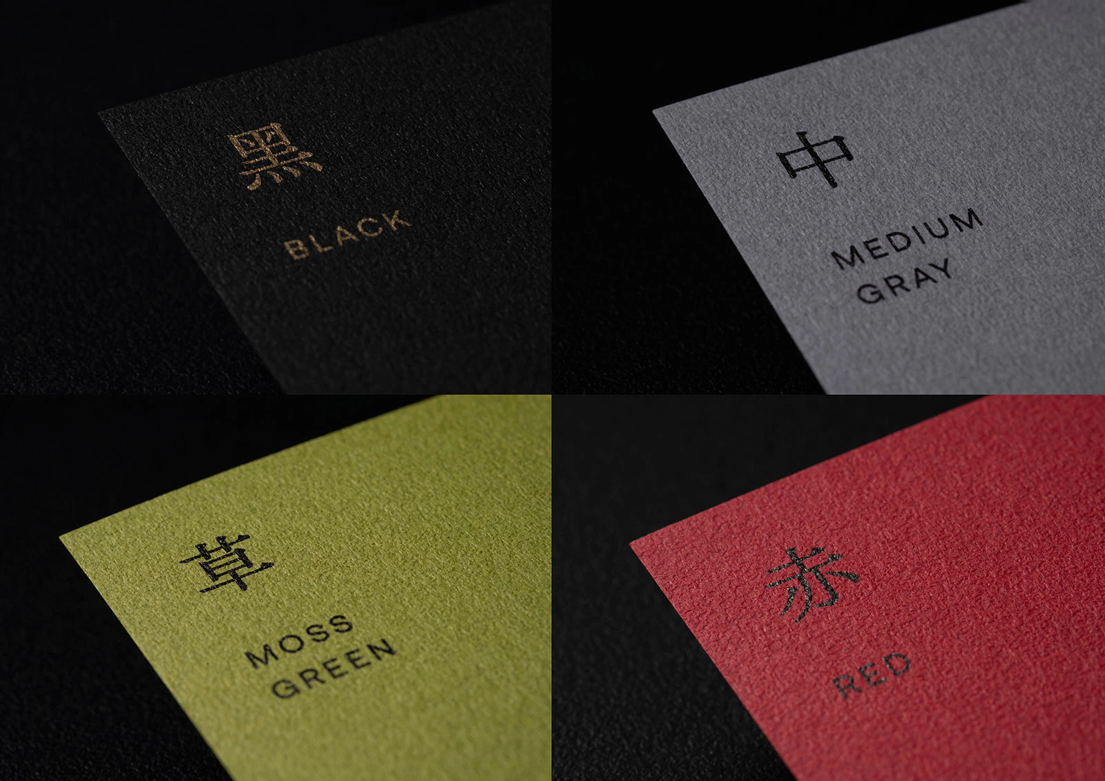 砂岩を思わせる硬質なミネラル感、洗練されたテクスチャーを持つ「サガンGA」。その多彩な色の名前を、香港での販売に際して中国語で丁寧に名付け直し、香港のデザイナーによる繁体字書体「空明朝體」を用いてデザインしました。