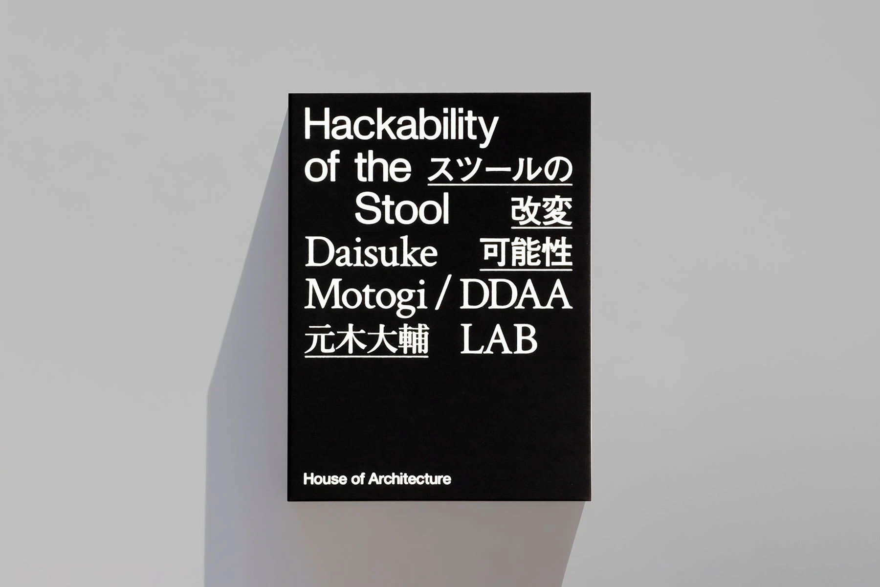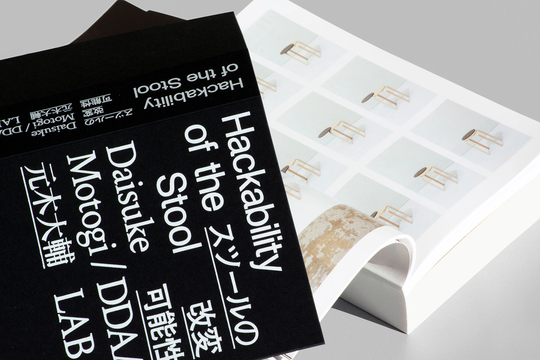 同書の構造は、プロジェクトにおけるスツールと改変された黒いアタッチメントパーツの関係をなぞり、中身の白い本をスツール、カバーをアタッチメントに見立て、それぞれが独立した存在となるよう、あえて両方を固定せず、カバーを外すと本体の白い紙の塊が現れるようになっている。