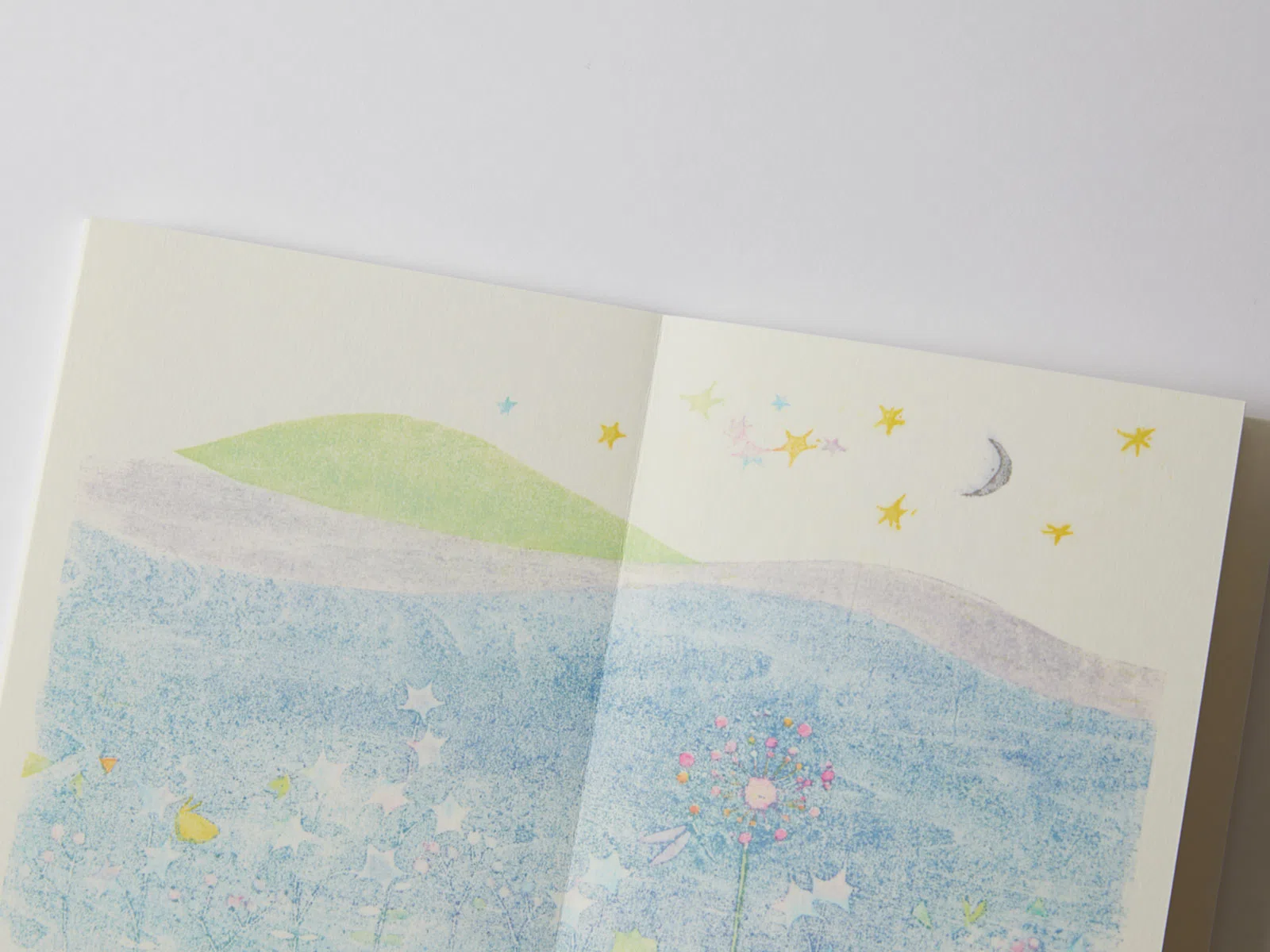 製本会社の美篶堂さんと一緒に制作した絵本『うさぎがきいたおと』でアラベール-FSを使用したので、今回も同じ紙を使いたいと考えました。アラベール-FSのやさしい風合いが、繊細な色合いの木版画をより引き立たせていると思います。