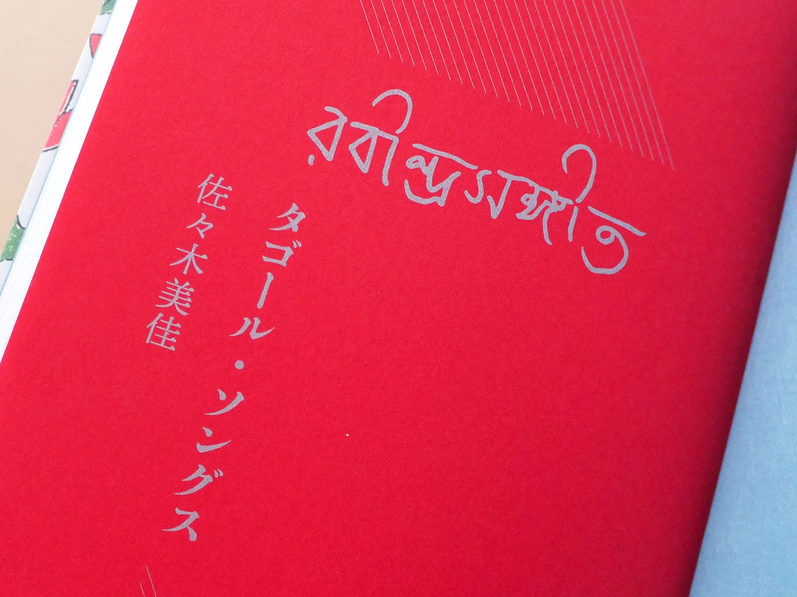仮フランス装で、天アンカット。表紙と見返しは接着せず、仮フランス装特有の折り返し部分がちゃんとみえるかたちにしたい。インドやバングラデシュでいまも人々に歌い継がれているタゴールの歌を追ったドキュメンタリー作品『タゴール・ソングス』。本書にぴったりの造本だとおもいました。