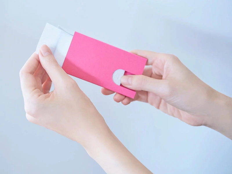 SOAPUME PAPIER(ソピューム パピエ)は「香り」にこだわった紙石鹸です。中身の紙石鹸は老舗の和紙メーカーによる製作で、中身だけでなくパッケージも出来るだけ「紙」を使用できればと思い実現したパッケージです。スライド式の「身」の部分はチップボールをビク抜きしたものを合紙し、断裁することによって、しっかりと厚さのあるパーツにすることができました。スリーブには独特の手触り感のあるサガンGAを使用し、形状はシンプルでモダンな佇まいでありながら、色彩や触感によって優しさや温もりを感じさせることを意図し、制作したパッケージです。(石田清志さん)