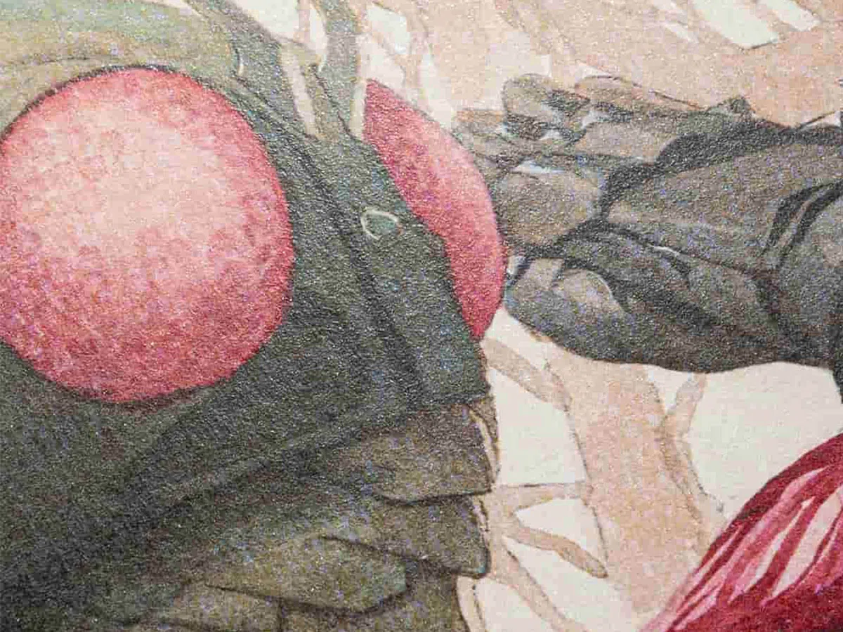 「シン・仮面ライダー×イセタン」複製原画の製作において、単なる原画の再現ではなく複製ならではの付加価値を求めていました。