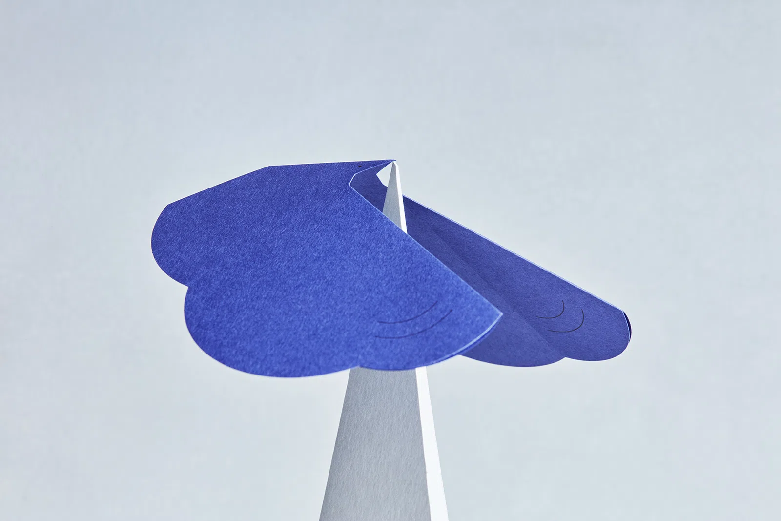 今年も良いこともそうでないことも、色々なすったもんだもありました。そんな中、デスク周りに飾ることで、ふと微笑ましくなるようなグリーティングカードをつくりたいと思いデザインしました。メッセージカード部分を組み立てると三角形の台紙になります。その先端に鳥のくちばしを乗せると、ゆらゆらとバランスをとりながら揺らぎます。日本の伝統的な玩具である「やじろべえ」のグリーティングカードです。翼を広げた鳥が幸せを運んできてくれる、という願いも込めてデザインしました。