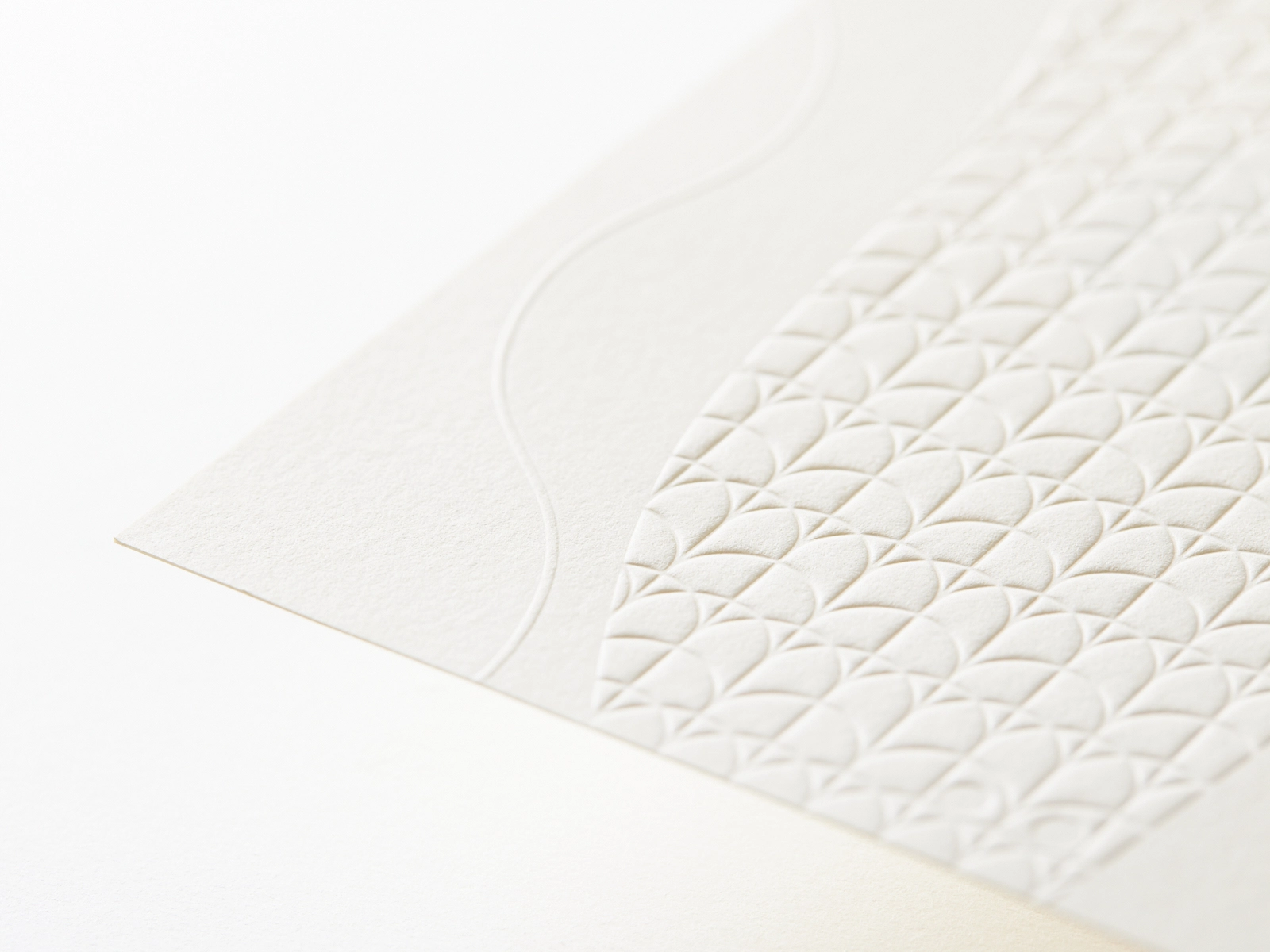紙は平滑で気品のある白の「ルミネッセンス マキシマムホワイト」と、ソフトな質感であたたかみのある色の「ロベール ホワイト」の2種類で制作し、質感と色の幅を持たせました。(株式会社竹尾 企画部)