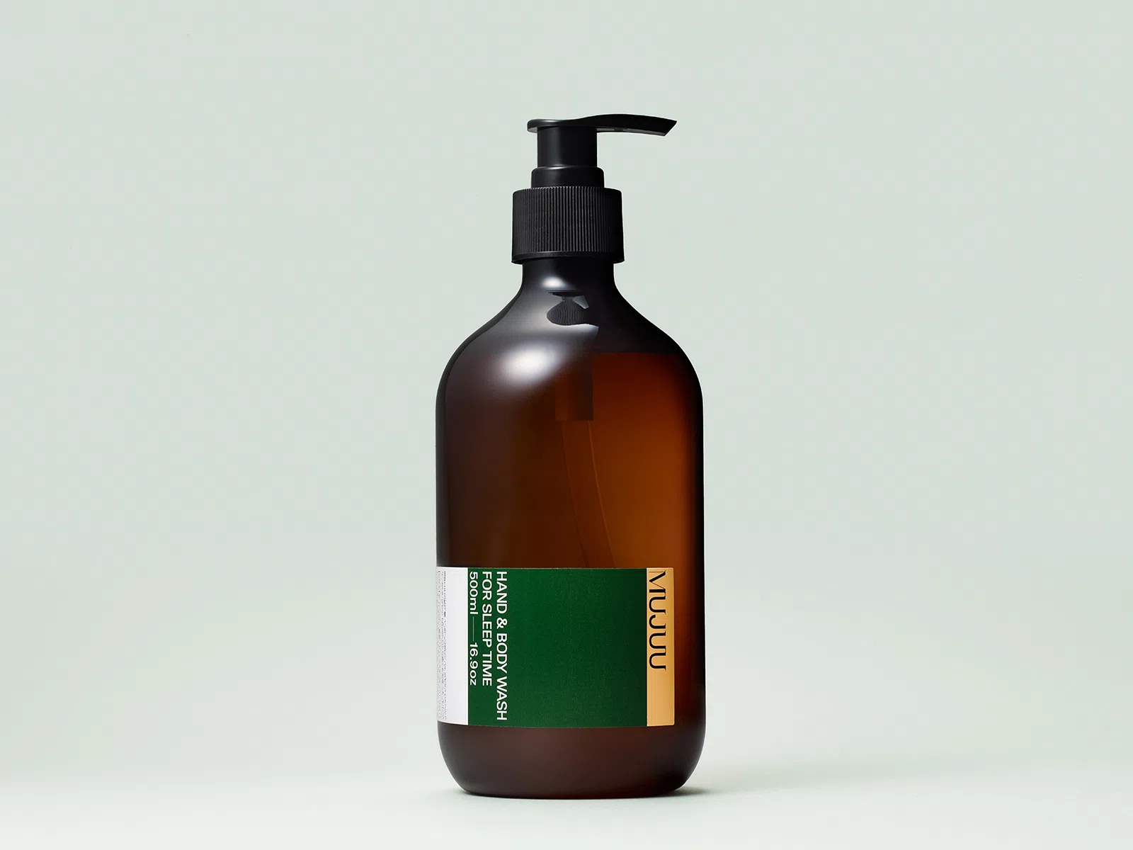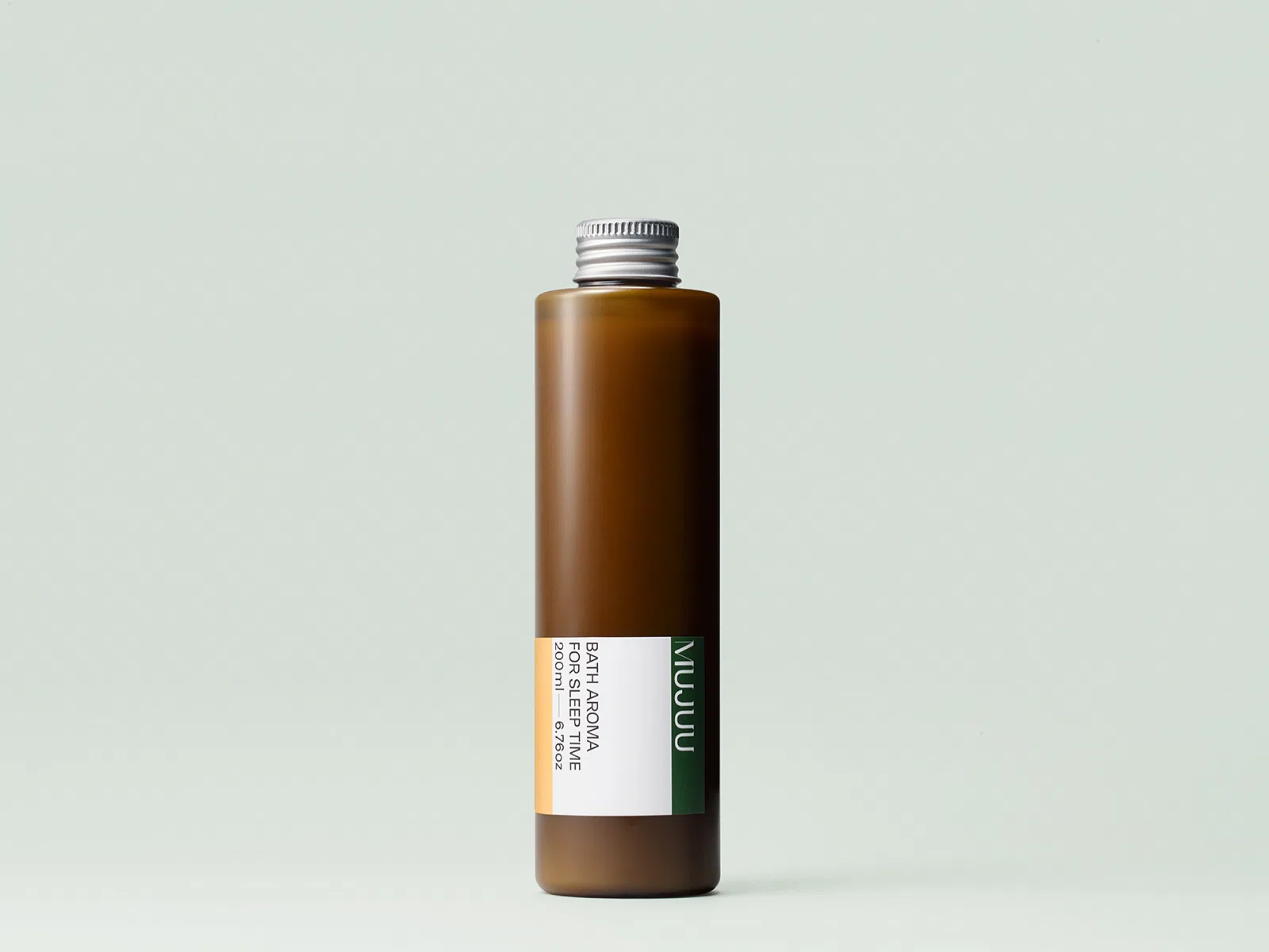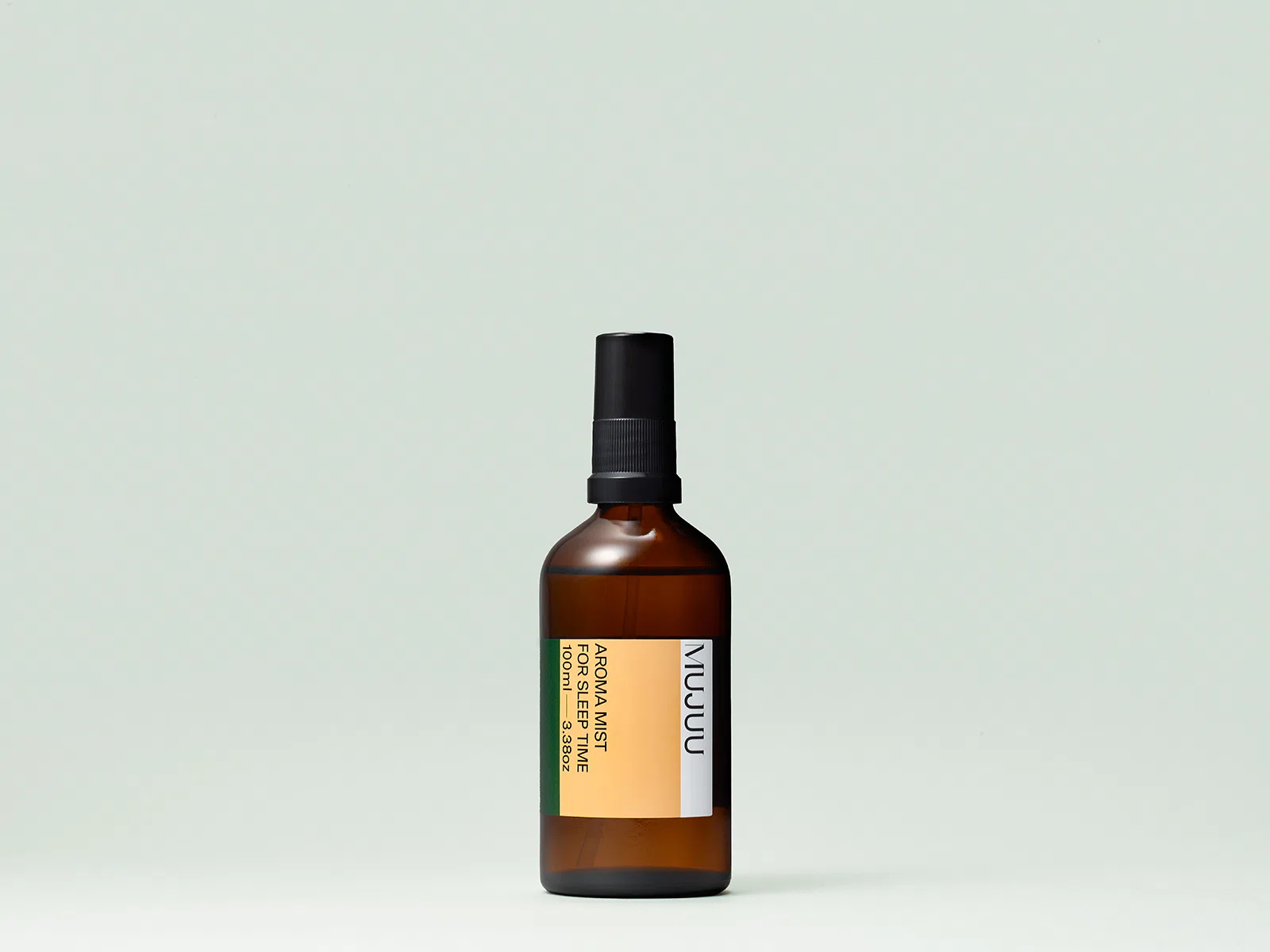 「MUJUU(ムジュウ)」は、忙しい人の睡眠ケアのために生まれたアロマブランドです。一日のおわりに頑張った自分を香りで労ってあげる。そこに寄り添うデザインはできるだけ削ぎ落としたものにしたいと考え、ブランドの顔つきをマークやパターンではなく、配色でつくっていくことに。膨大なスタディを重ね、森林のような緑と、日の光のような淡黄色、そして白の3色を選びました。4つのプロダクトを並べると、色が繋がるよう設計しています。