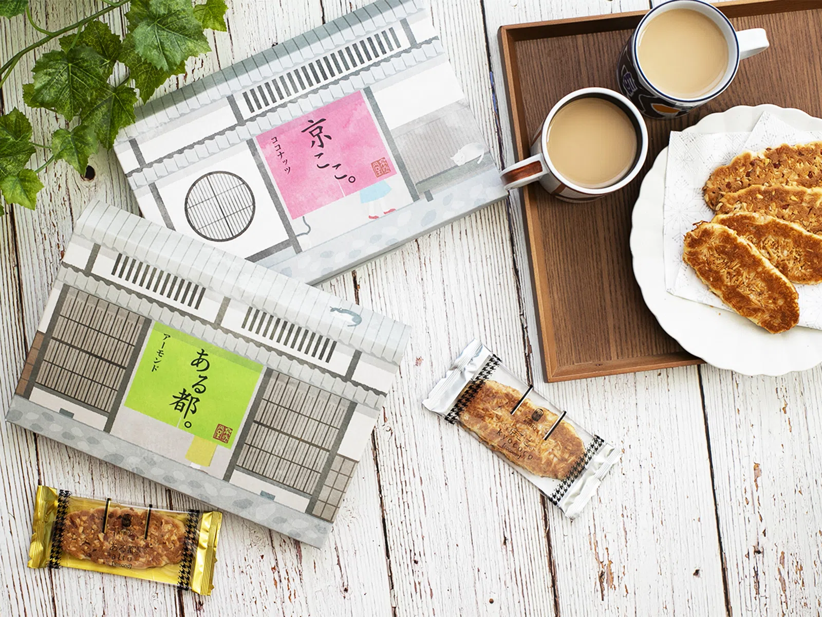 コロナ禍で京都への観光客が激減する中、京都・祇園の老舗菓子店 京煎堂様が開発した洋風焼き菓子のパッケージです。「京ここ。」と、その姉妹商品となる「ある都。」を他商品と異なるパッケージにしたいとのご依頼でデザインしました。
