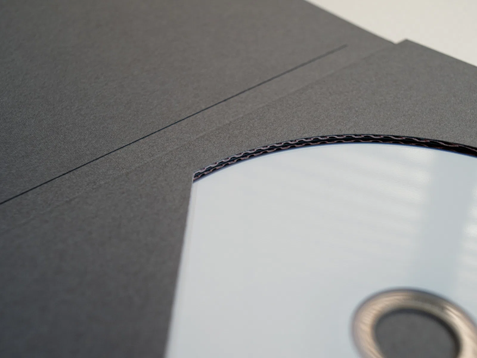 自分がディレクションした映像作品を納品するパッケージをつくるにあたり、紙を選ぶ段階でフルート構造と表面と中芯の色の組み合わせで表情が変わる特性を持つ「ファインフルート」には、梱包時の強度、軽さとデザイン性を併せ持つ力があるのでは、と考えました。パッケージそのものには印刷をせずに、ポケットに挟みこんだ紙に文字情報、グラフィックデザインを施すつくりにしました。結果、コストダウンもでき、挟みこむ紙の質感とグラフィックデザインが異なるバリエーションをつくりだすことに繋がりました。(石本夏帆さん)