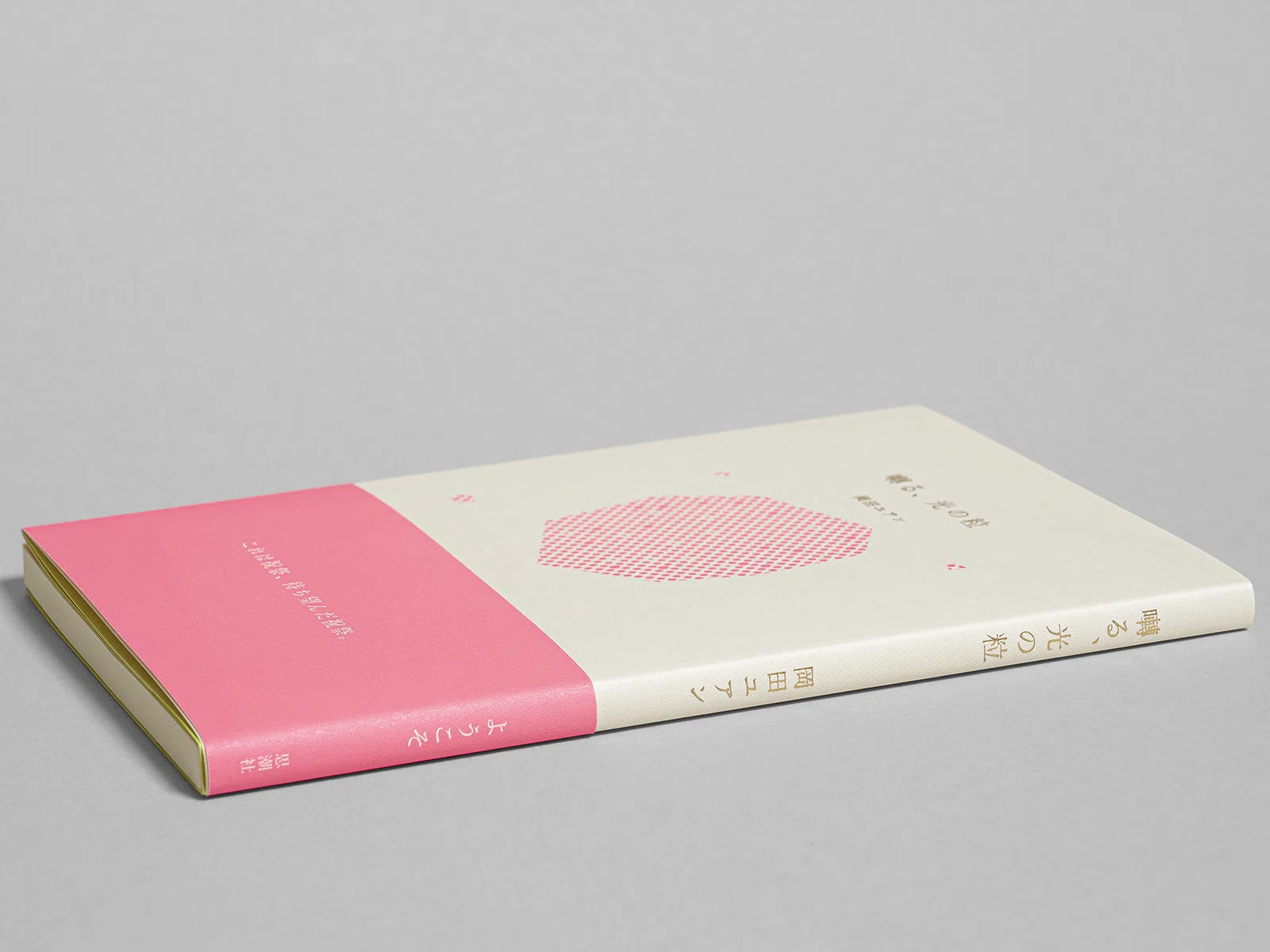 岡田ユアンの第四詩集『囀る、光の粒』は、すでにそこに在った光の粒子が降り注いでいる。光の粒は言葉たちだ。均質で細かな菱形のエンボスを持つ「ミニッツGA ホワイト」をカバーに使い、光の粒の世界を拡張した。表紙を開くと見返しの「ミニッツGA シトロン」が、祝祭の朝のように始まりを宣誓する。扉の「NTパイル」は本という紙の集合体の中で物質感を放ち、八角形の光の残像とともに幕があく。(長澤昌彦さん)