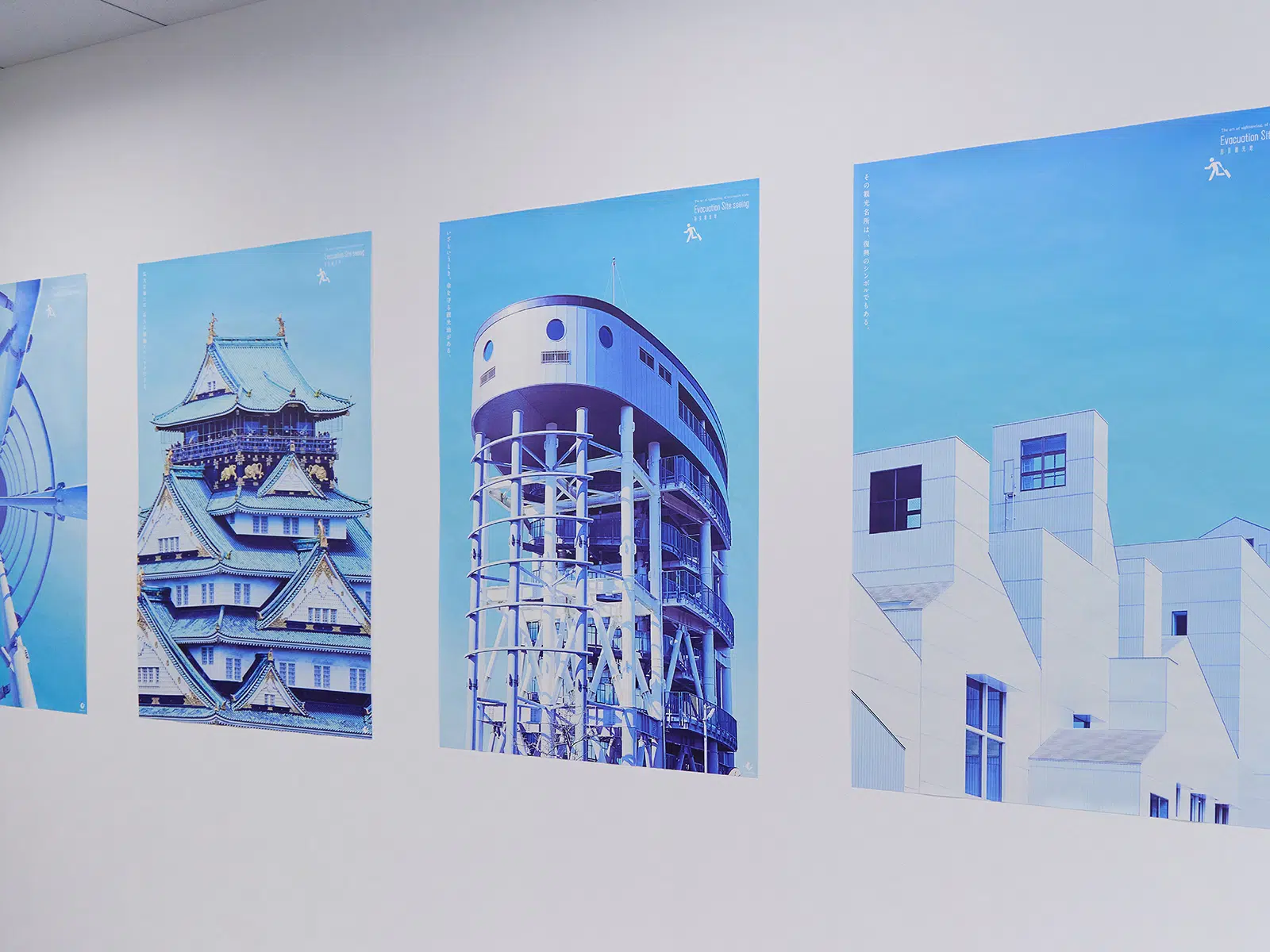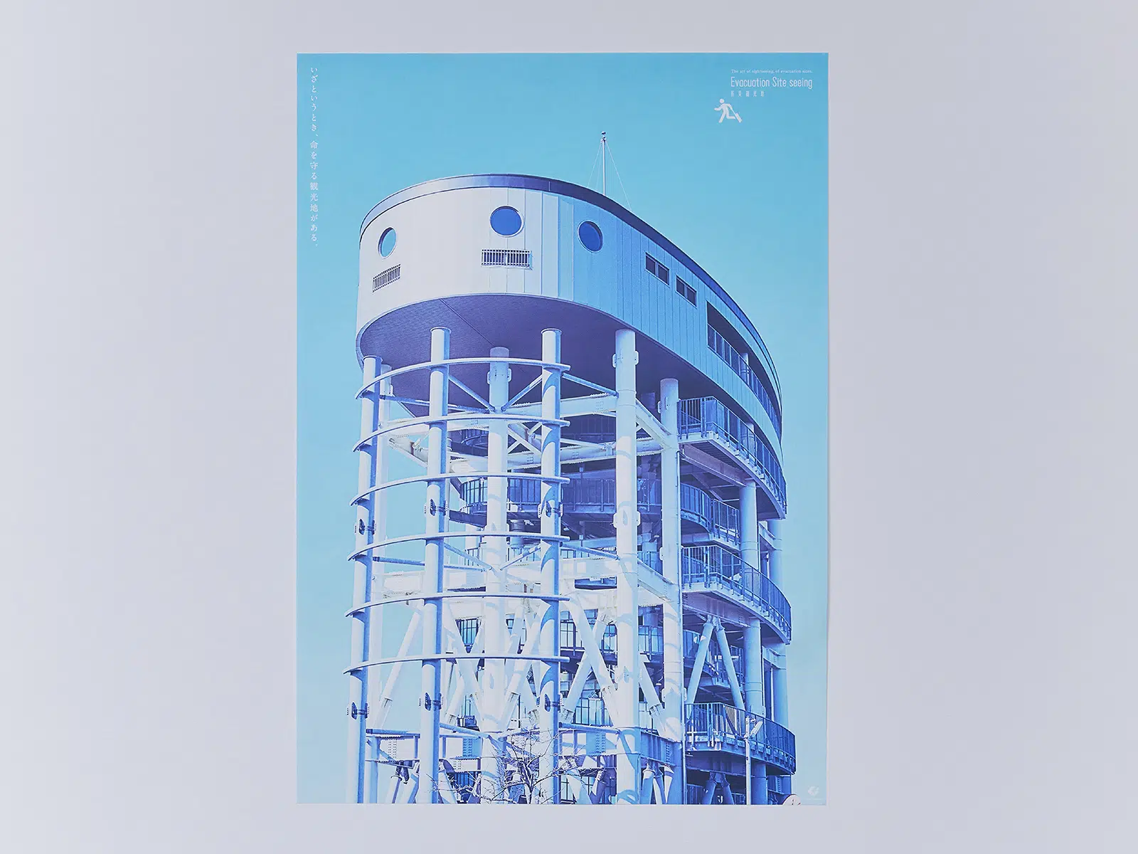 防災観光地の認知促進をはかるため、観光と防災を兼ね備えた建造物をモチーフに今までにない構造美・機能美を全面に表現したポスターを展開しました。ポスター紙には、耐水紙「プラレスペーパーCoC NC」を使用し、いざという時にもポスターが劣化しないよう、素材面でも配慮して制作しました。単なる観光地の紹介ポスターではなく、紙種にもコンセプトを反映し、いざという災害時「命を救うかもしれないポスター」を目指しました。(増田総成さん)