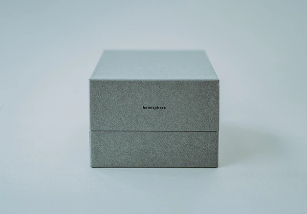 構想段階でジェンダーレスでタイムレスなブランドにしたいとの要望があったのでパッケージは性別や年齢、趣味趣向を出来るだけ問わない無機質な表情を持たせたいと、あらゆる紙を探していました。当初は違う複数の紙の組み合わせで検討していたのですが、入稿寸前で、竹尾さんから新発売のご案内を受け全ての紙管を「FAVINI TOKYO」で揃える事にしました。