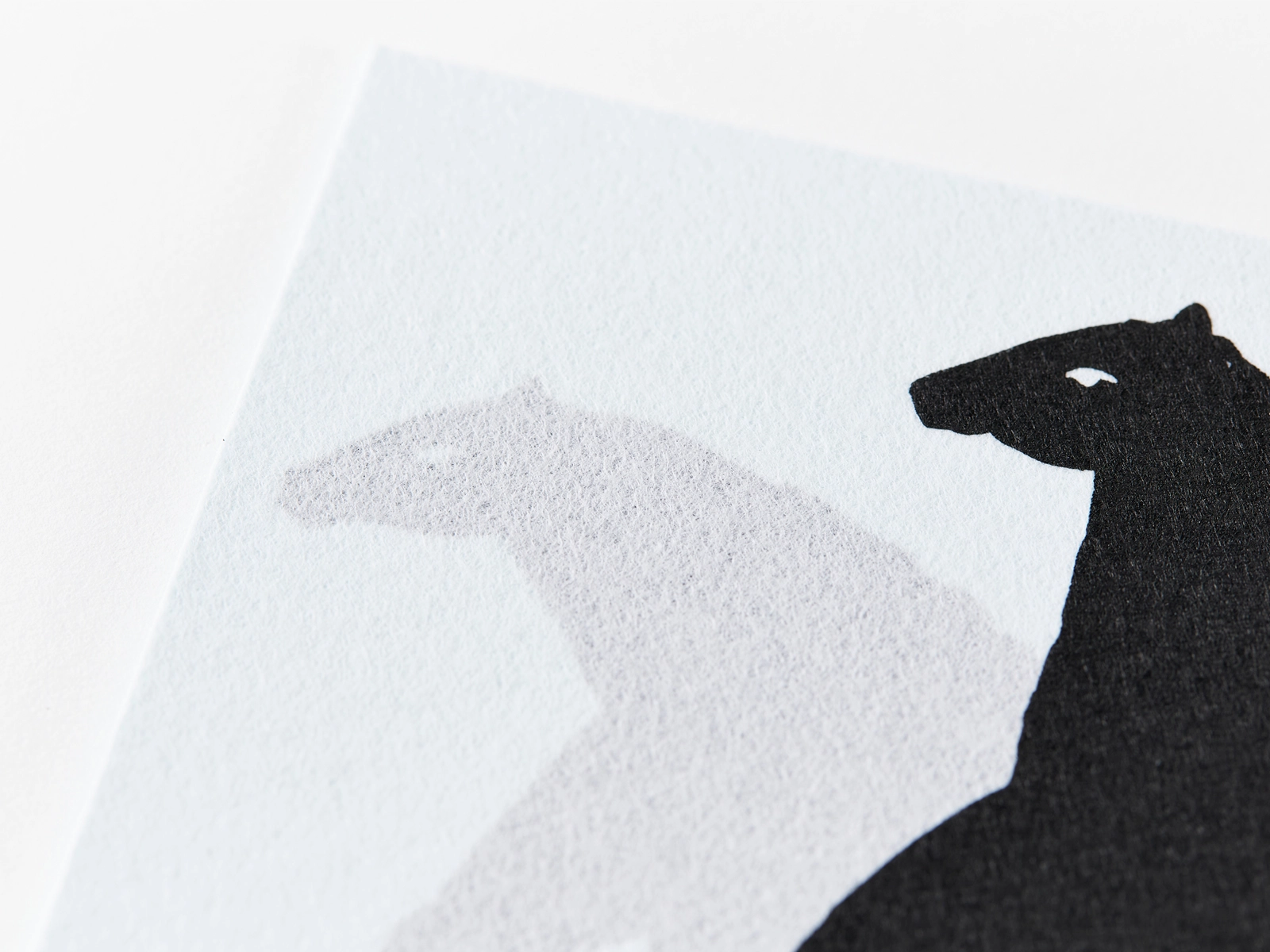 干支の馬をモチーフとして、馬を印刷したファインペーパーと「MBSテックA」を貼合することで、それぞれの紙の質感の違いや紙の奥行きを体感できるデザインになっています。