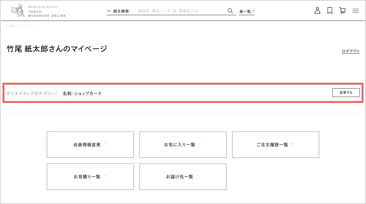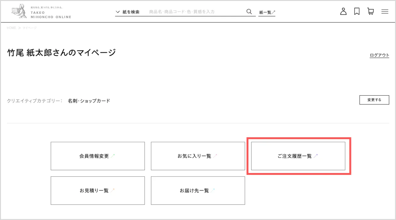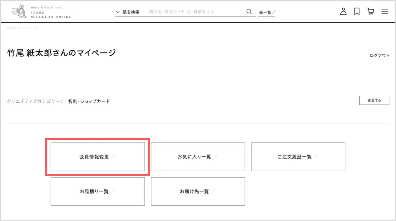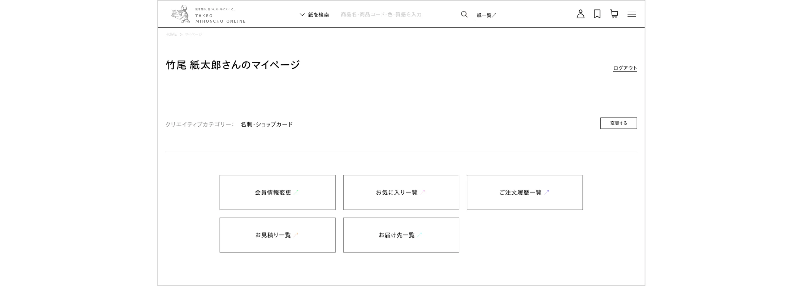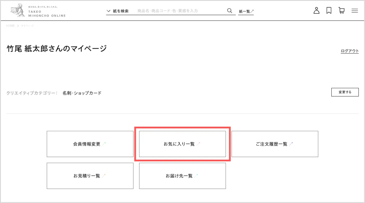 マイページでは会員情報、お気に入り、ご注文履歴、お見積り、お届け先を閲覧・編集することができます。